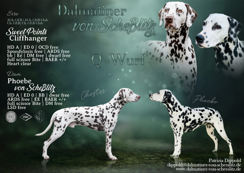 Mein Name ist Patrizia Dippold und ich züchte seit 1997 Dalmatiner. Was genau unter „Züchten mit Herz“ zu verstehen ist, finden Sie auf dieser Seite.