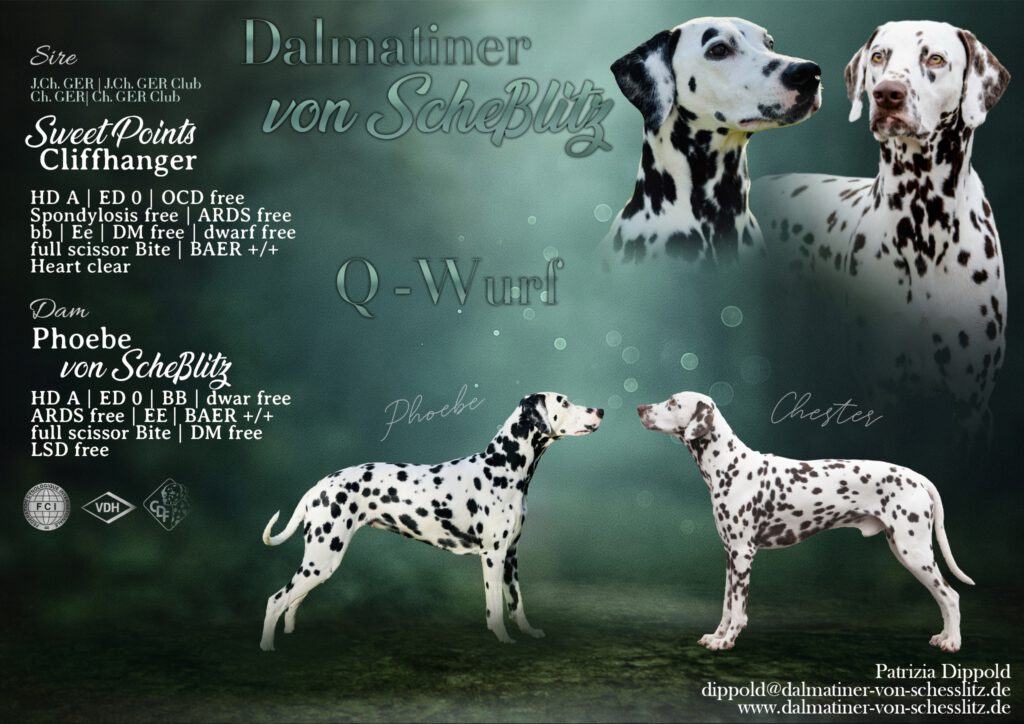 Mein Name ist Patrizia Dippold und ich züchte seit 1997 Dalmatiner. Was genau unter „Züchten mit Herz“ zu verstehen ist, finden Sie auf dieser Seite.