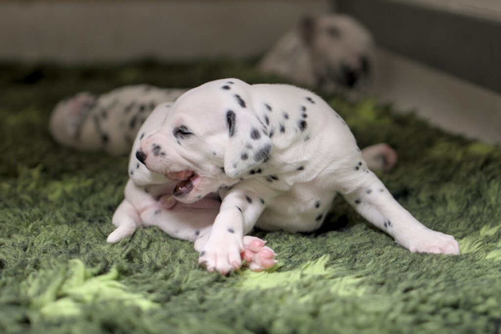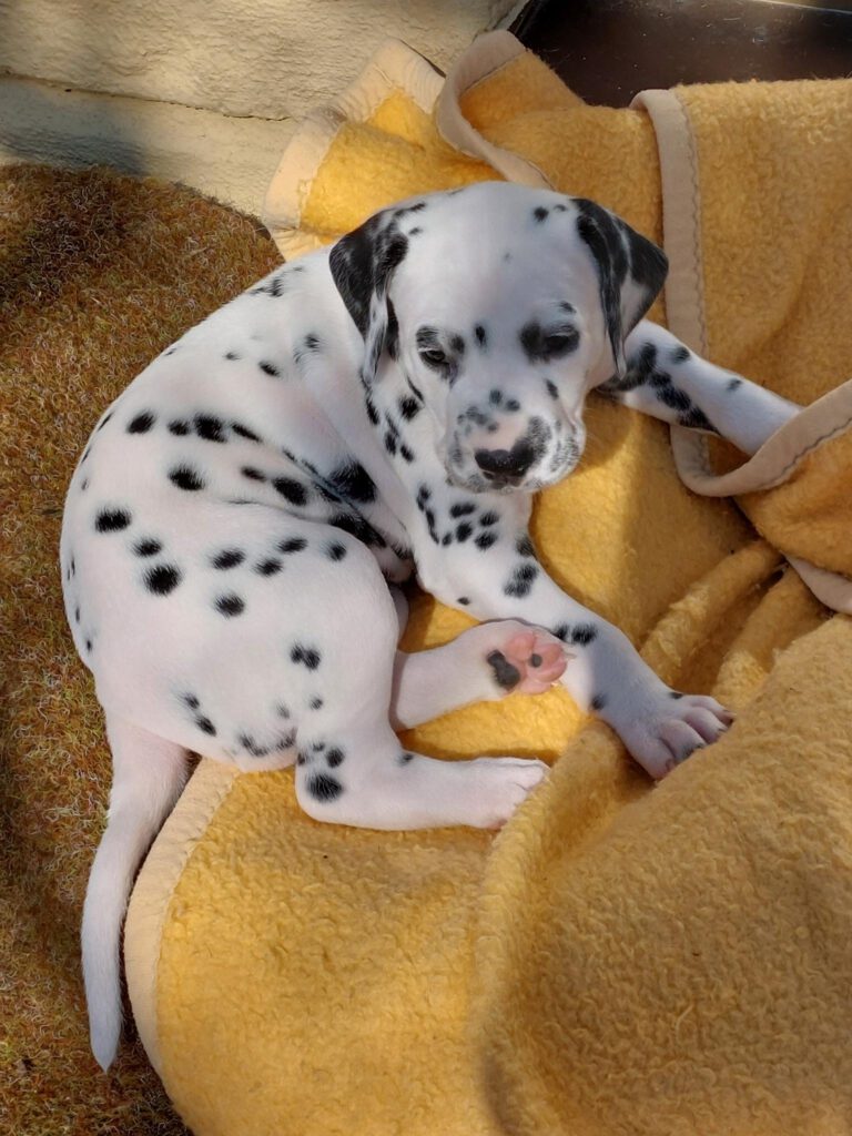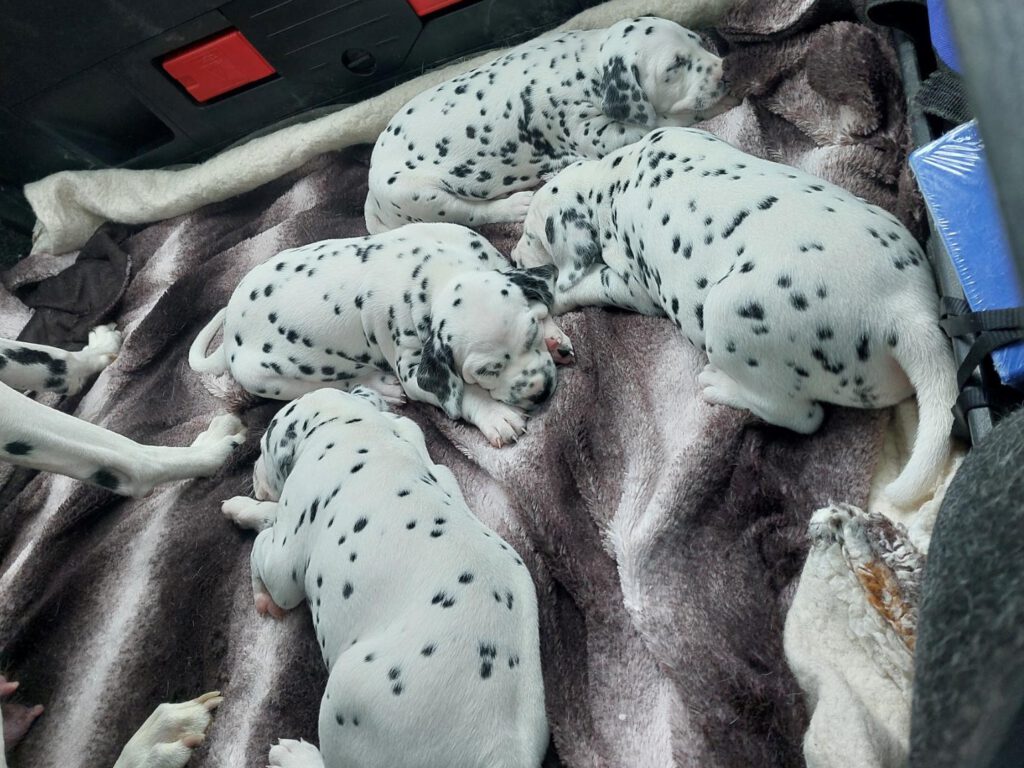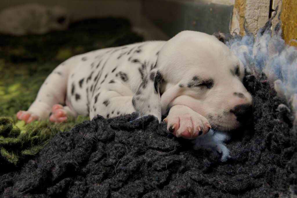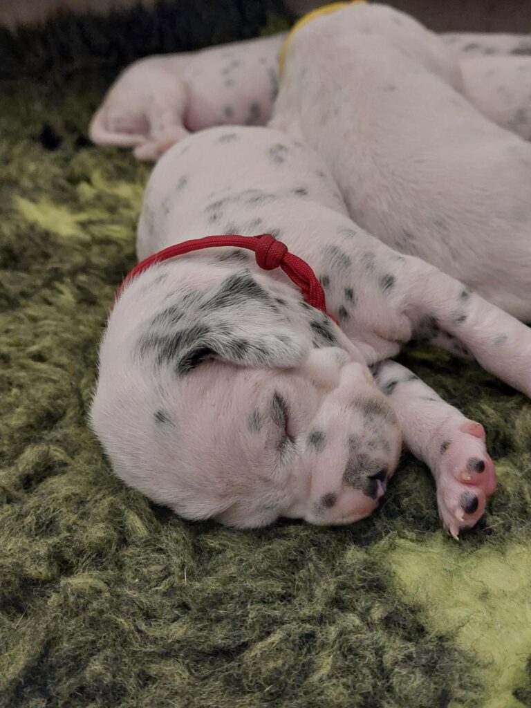 Die Fleckung kommt langsam durch und aus weißen Mäusen, werden echte Dalmis. Die kleinen haben einen enormen Appetit und am 11.Tag beginnen sie die Augen zu öffnen.