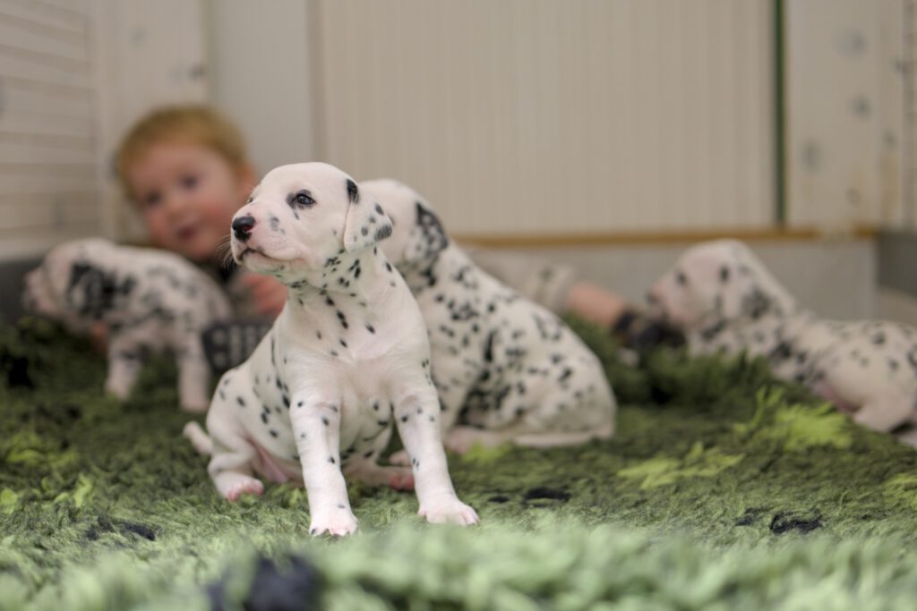 Ab jetzt ist man als Züchter gefordert. Es gibt so viel, das die Kleinen kennen lernen müssen: Laute Geräusche, Auto fahren, in den Garten und sehen, wie groß die Welt ist. Ich bin sehr zufrieden mit dem Charakter der Welpen. Sie sind bisher sehr entspannt und beim 1. Autofahren sind sie sogar eingeschlafen. 🙂 ( beim Bild im Auto liegt Frau Gelb gerade hinter ihrer Mama). Unser kleiner Enkelsohn übernimmt die Prägung auf Kinder ;-P