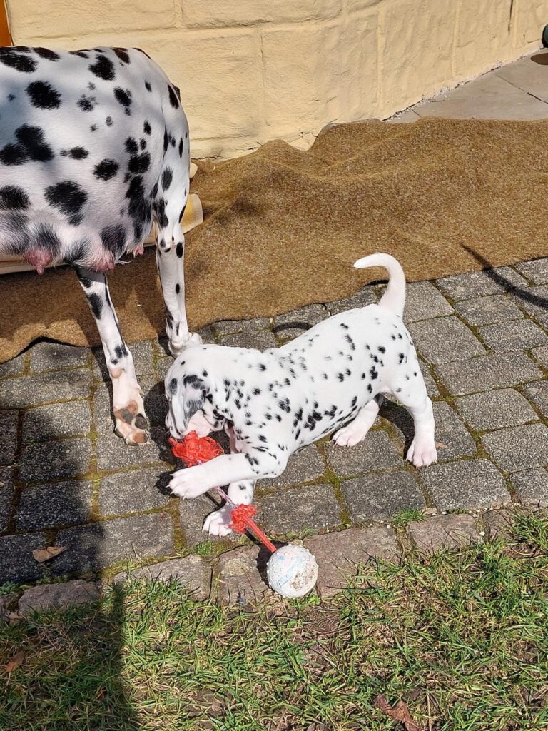 Am 27.11.25 kam es zum Rendezvoues zwischen Phoebe und Chester. Die Hunde waren sich gleich sehr sympathisch und spielten schön miteinander. Es vollkommen frei und ungezwungen zum Deckakt. Wir sind sicher, dass er Früchte tragen wird und freuen uns schon sehr auf die Babys.